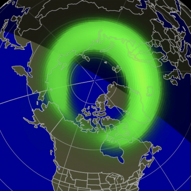 Zorza widoczna jest od szerokości geograficznej 66'33" na obu półkulach